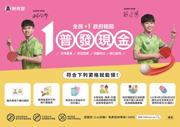 財政部「全民+1 政府相挺」普發現金