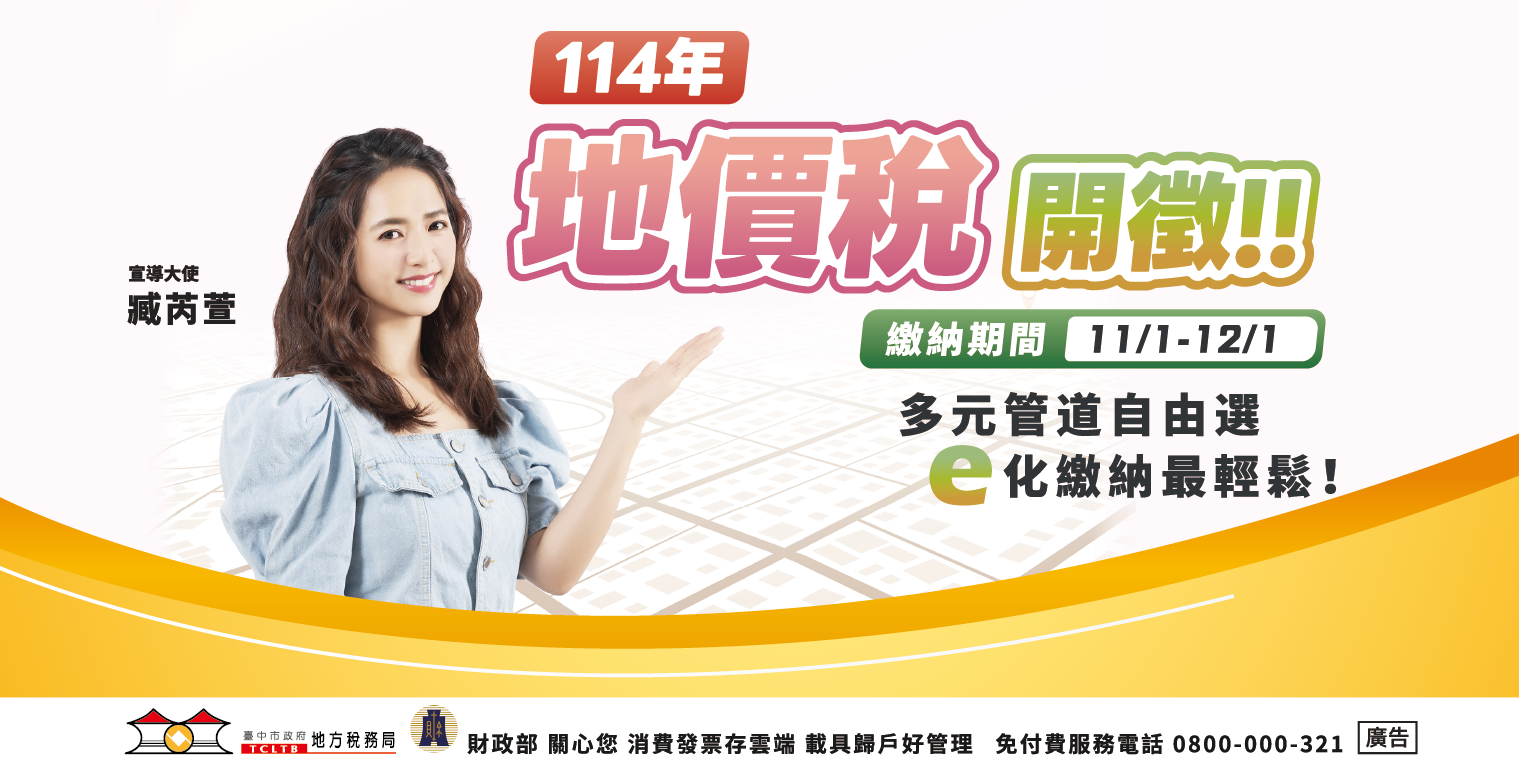 記得在12月1日前完成繳稅,手機電子支付繳最方便,更多資訊請上地稅局官網地價稅開徵專區查詢或撥打客服專線22585000按1。