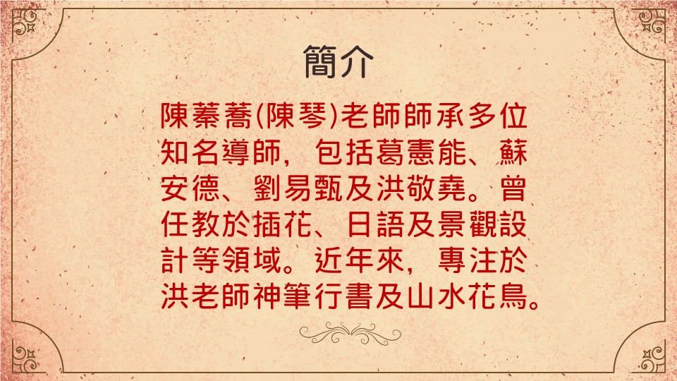 「藝文書軒」陳蓁蕎(陳琴)老師創作個展簡介